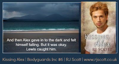 Thanks so much for stopping by today’s blog tour for Kissing Alex by R.J. Scott. This is book #6 in the Bodyguards Inc. series but can be read as a standalone book. If you are a fan and have read the whole series, you will see a few of your favorite characters in this book but they don’t play major roles. In Kissing Alex by R.J. Scott, you will get to read about Lewis, a martial arts expert, protecting a very sexy celebrity singer who is absolutely nothing like Lewis’s expectations! Keep reading for my review, a few teasers and a giveaway to enter.